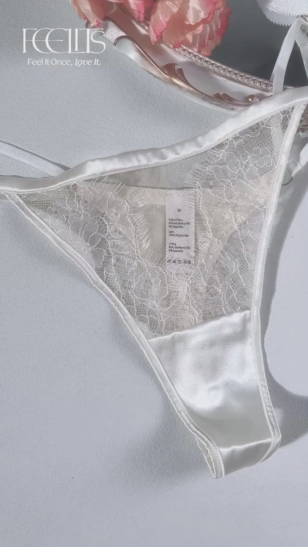 ملابس داخلية نسائية من FEELITS Seduction مصنوعة من الحرير والدانتيل بتصميم على شكل حرف T، منخفضة الارتفاع - ملابس داخلية فاخرة من حرير التوت بنسبة 100% للنساء، شفافة، جذابة وأنيقة