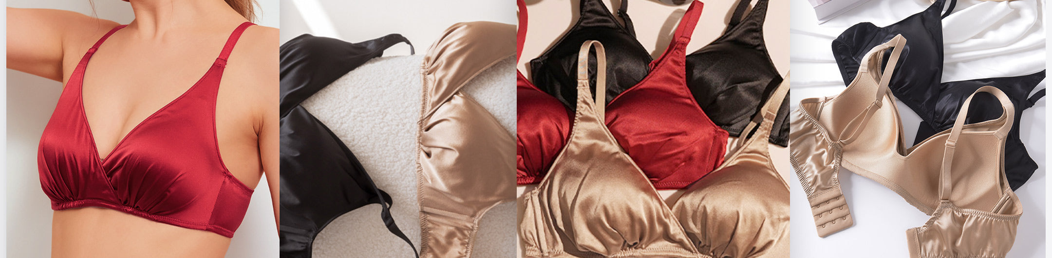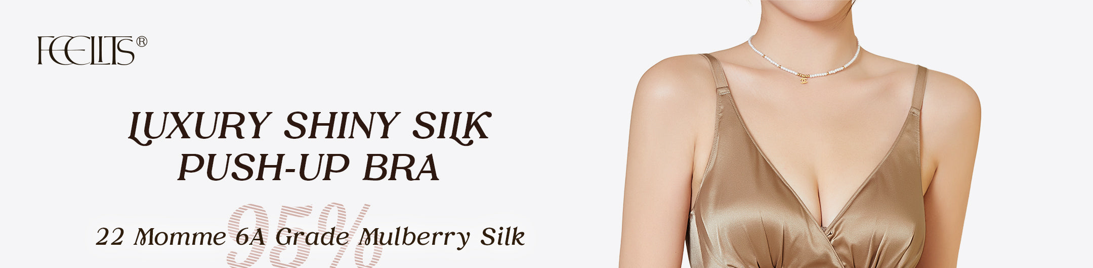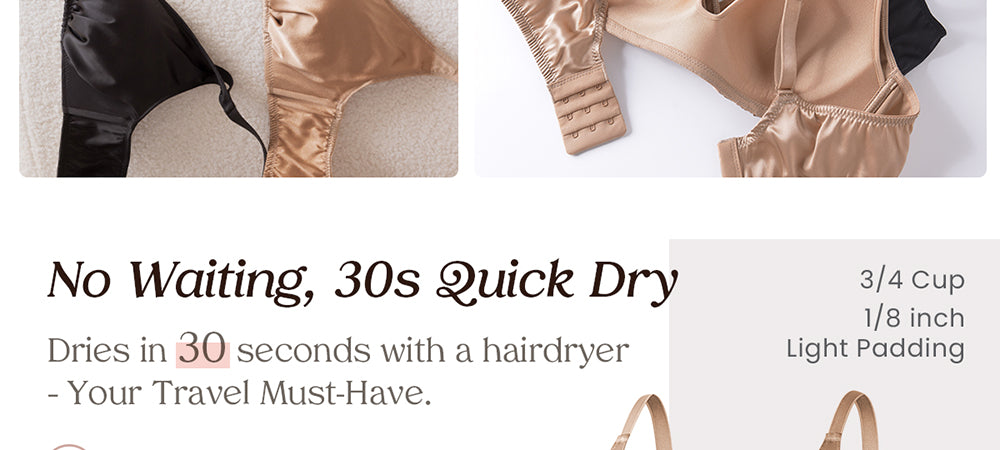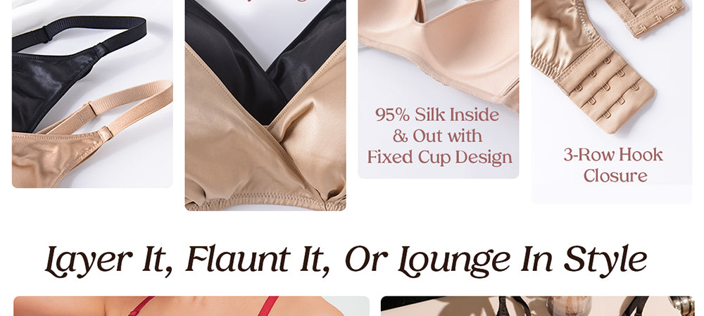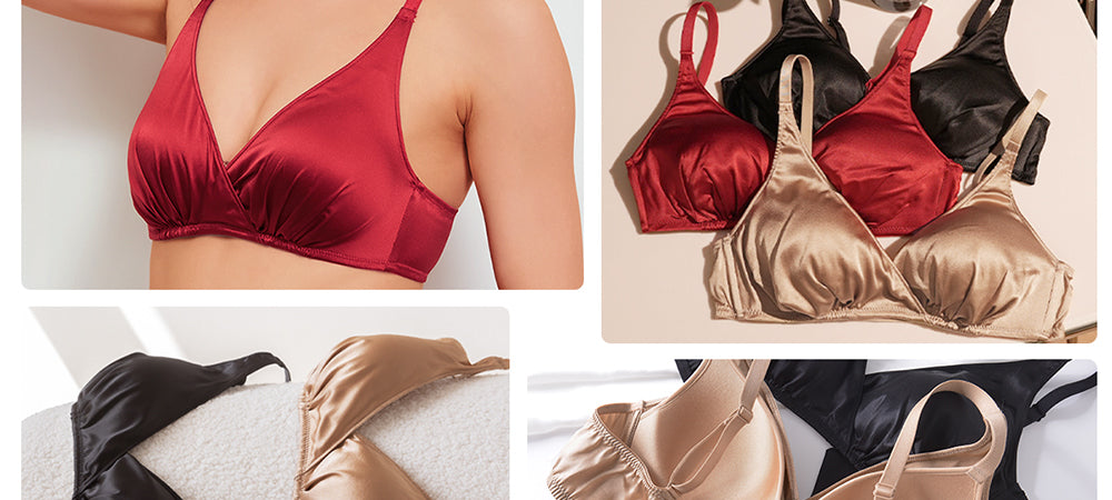 FEELITS Real Mulberry Silk Bralette, Wireless Push - Up 19 Momme Silk Satin Bra with Adjustable Straps - FEELITS