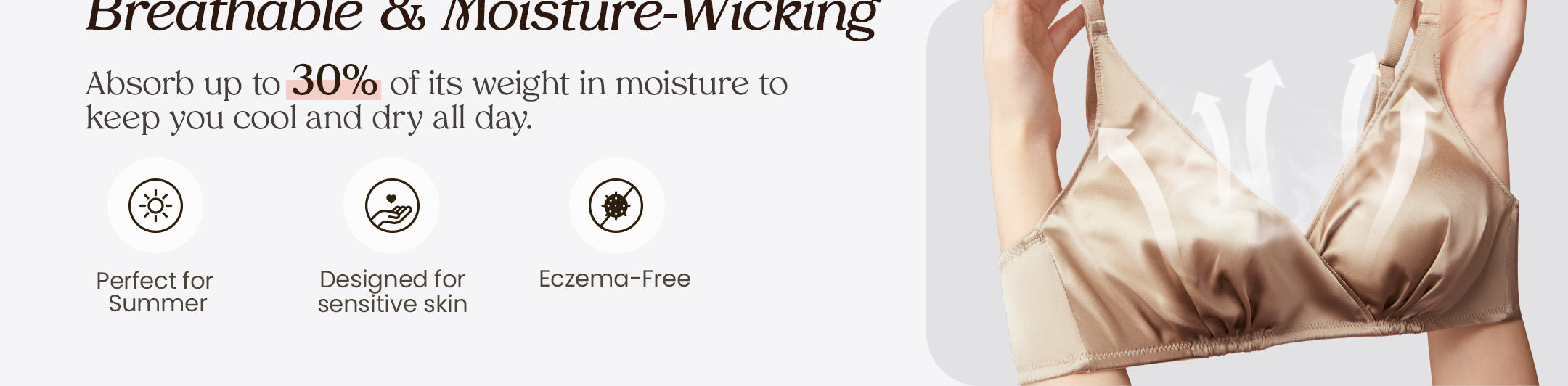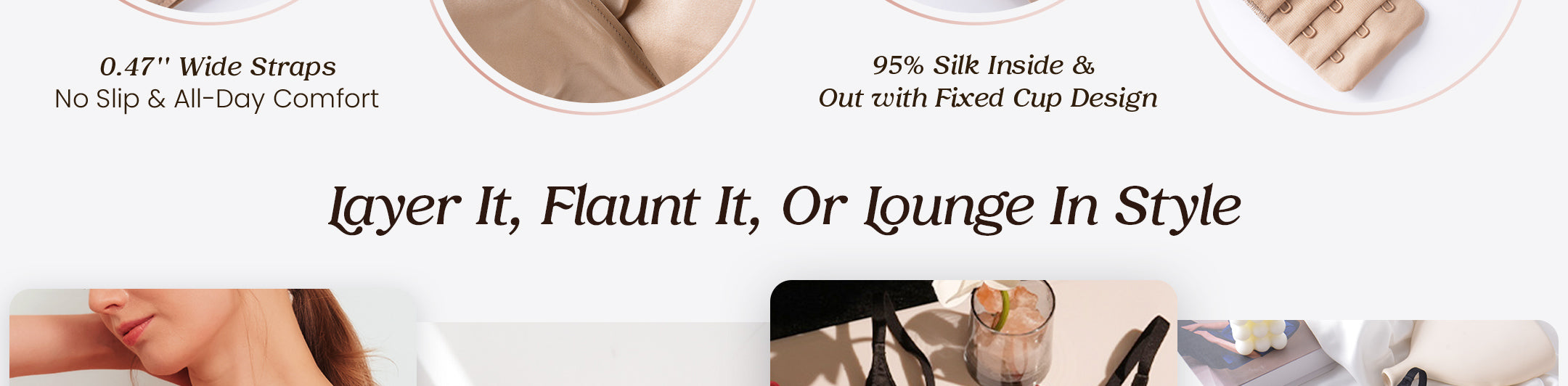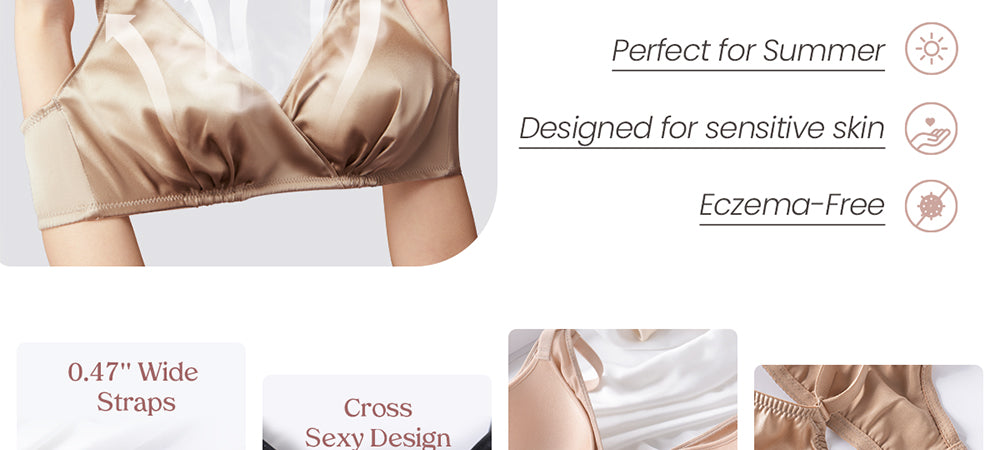 • حمالة صدر فاخرة من حرير التوت الساتان - مصنوعة يدويًا من 95% حرير التوت و5% سباندكس، تجمع هذه الحمالة بين الفخامة والراحة. دللي نفسك بأناقة حمالة صدر حرير التوت الخاصة بنا، لتنعمي بملمس ناعم كالحرير يداعب بشرتك طوال اليوم.