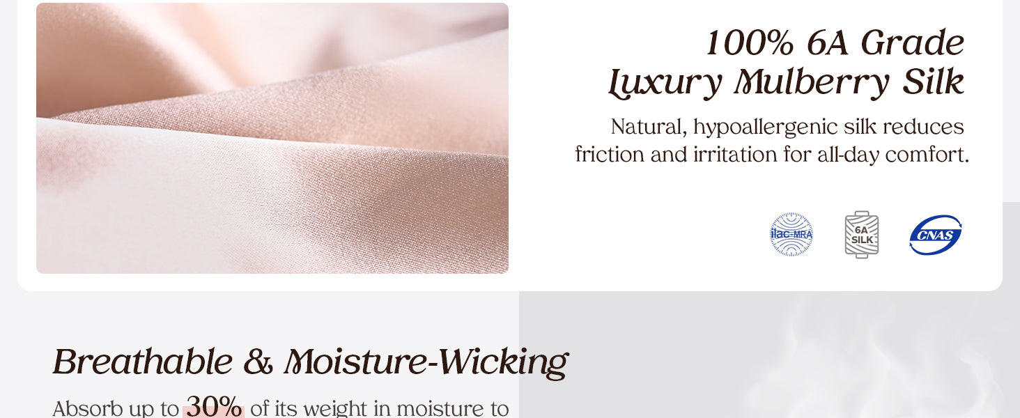 • Premium Mulberry Silk – Crafted with 100% 6A grade silk for a smooth, breathable, and hypoallergenic finish.