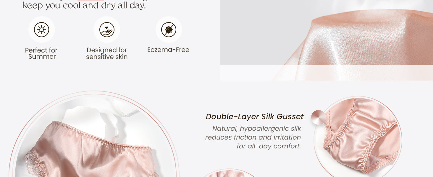 • Double-Layer Silk Gusset – Soft, breathable, and skin-friendly, supporting comfort and confidence.