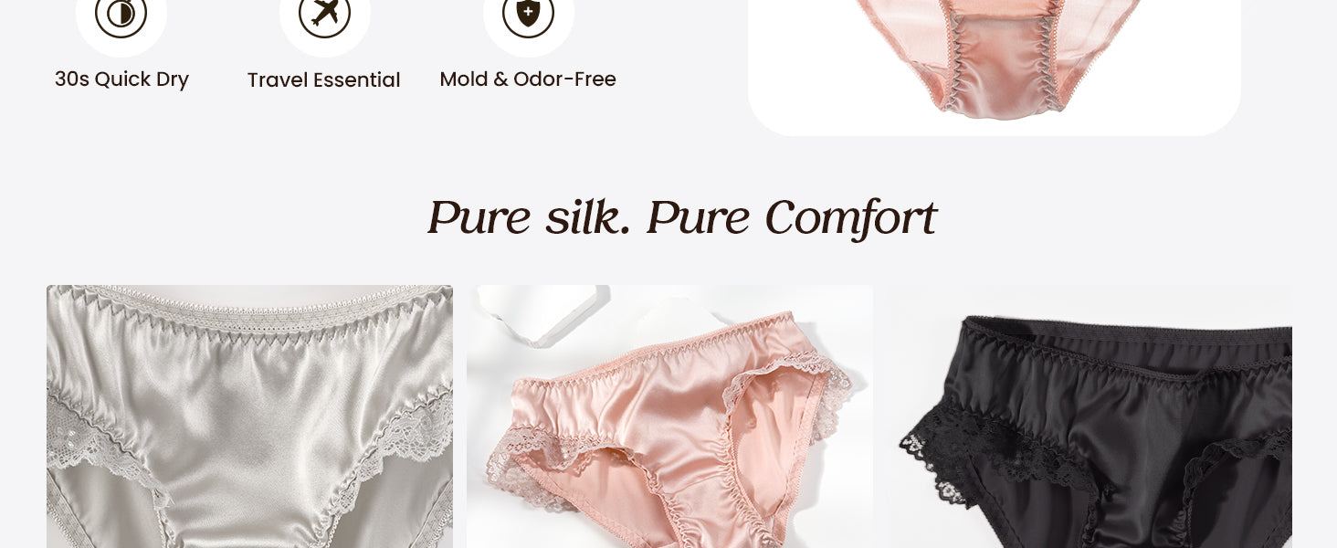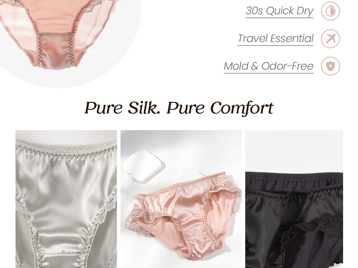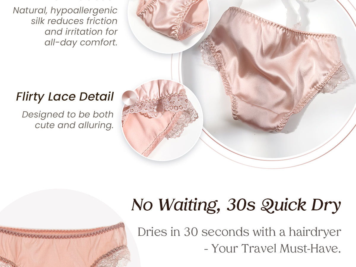 • Quick-Dry & Travel Must-Have – Use a hairdryer to dry these silk panties in 30 seconds, ideal for travel and daily wear.