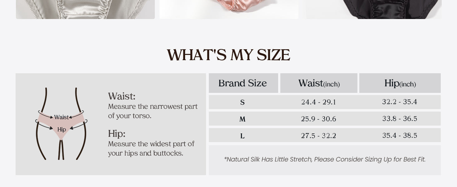 Sizing Tip: Mulberry silk has naturally low elasticity. For the most comfortable fit, please choose 1–2 sizes larger than your usual size.