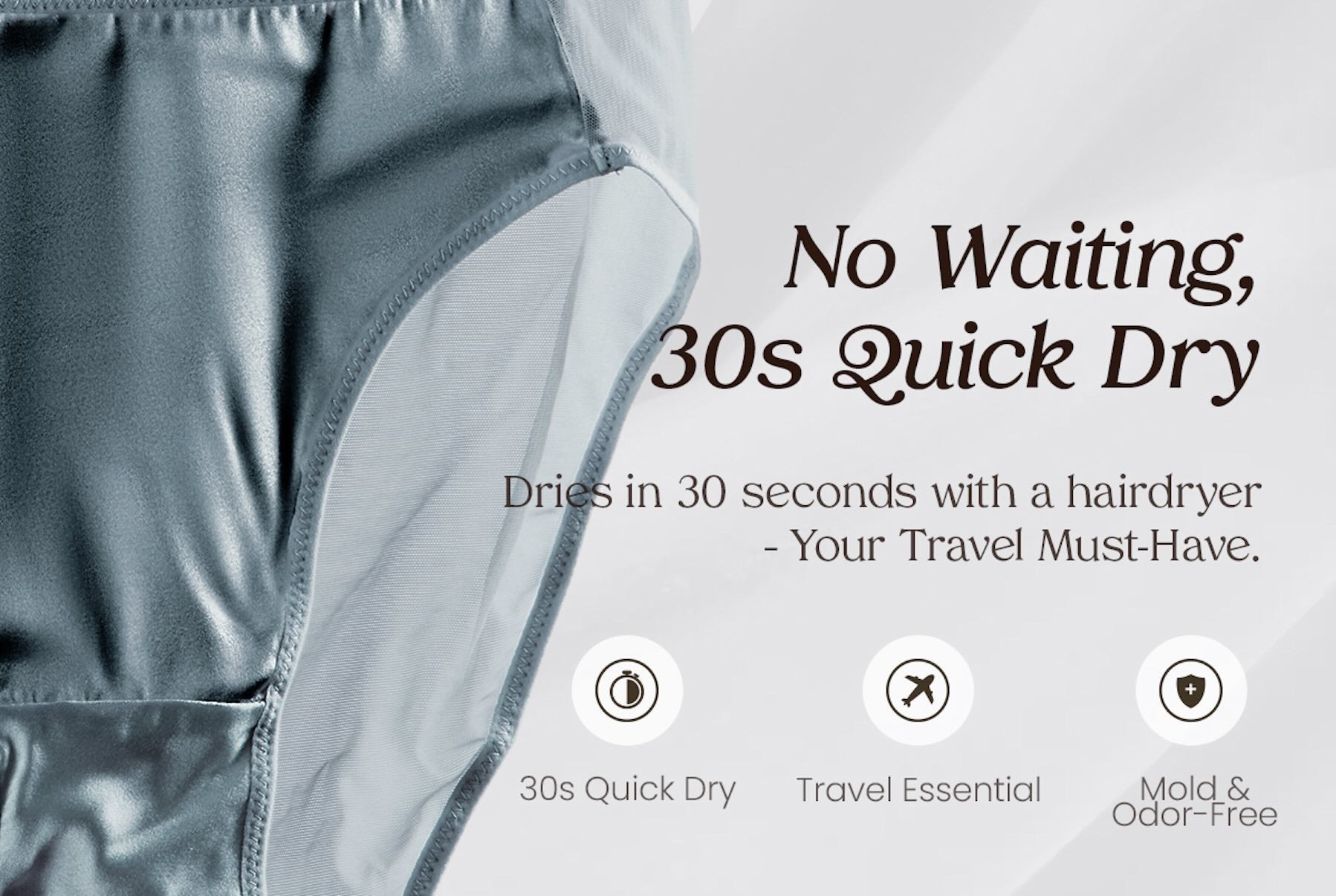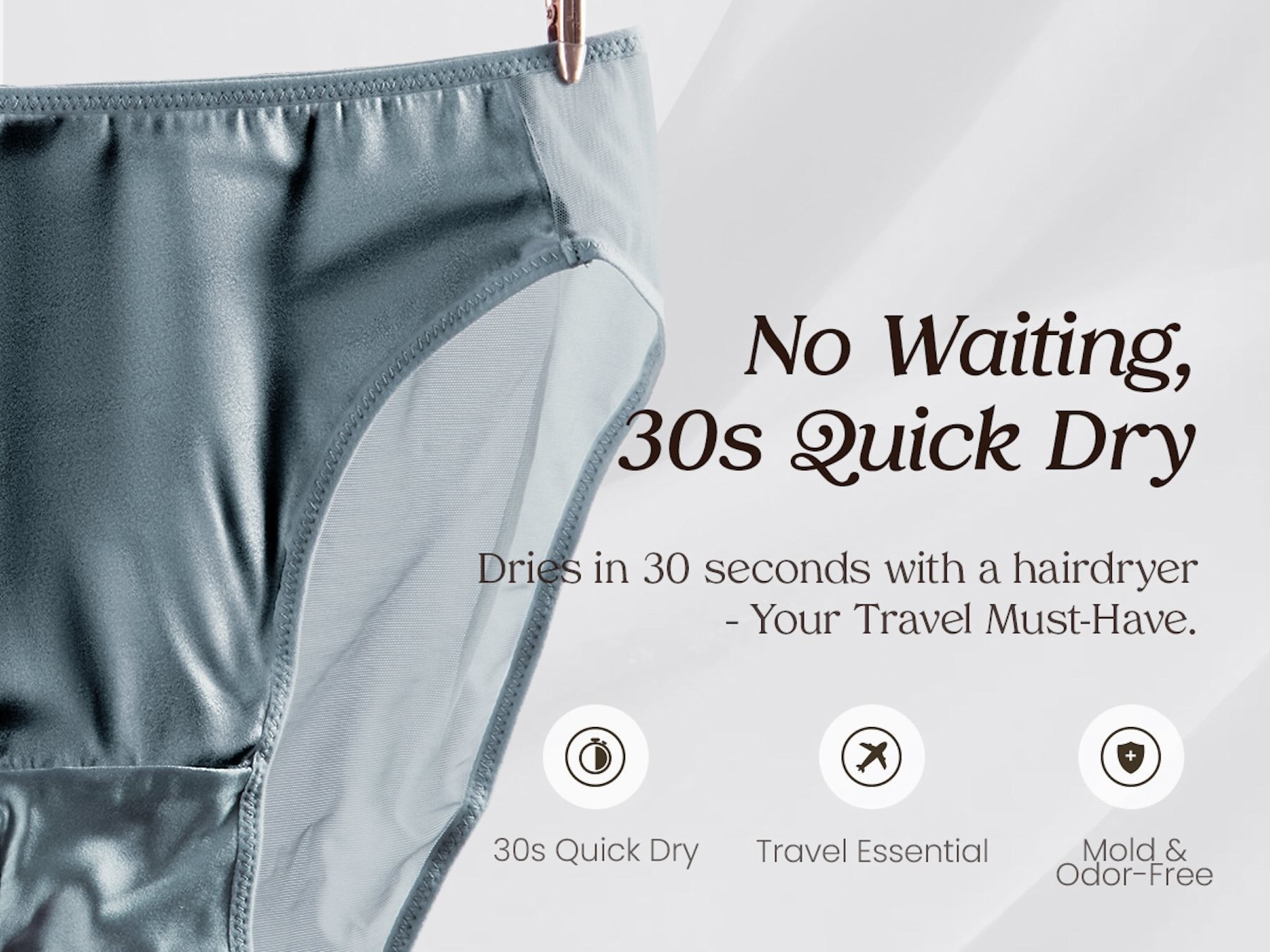 - Quick-Dry & Travel Must-Have – No need for a dryer—just use a hairdryer to dry these silk panties in 30 seconds, offering ultimate convenience for travel and everyday use.