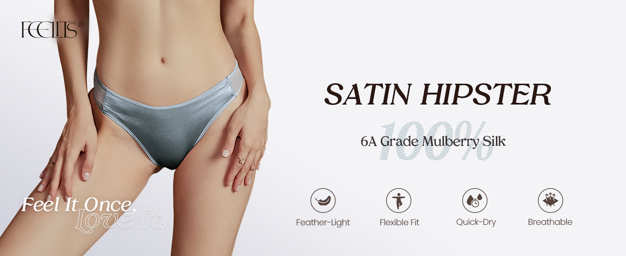 Feelits 6A Grade Mulberry Silk Panties, Hipster Ultra Breathable Bikini Panties for Women