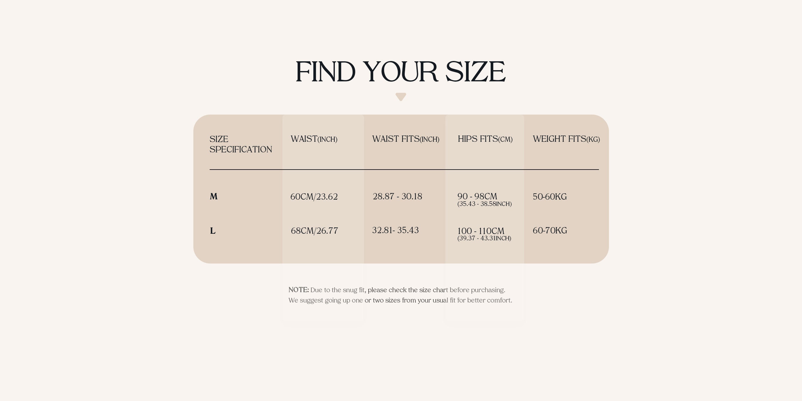 • *NOTE: Due to the snug fit, please check the size chart before purchasing. We suggest going up one or two sizes from your usual fit for better comfort.