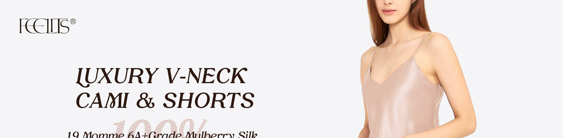 FEELITS 100% Mulberry Silk Pajamas Set for Women - 19 Momme Silk V-Neck Cami & Shorts, Adjustable Spaghetti Straps