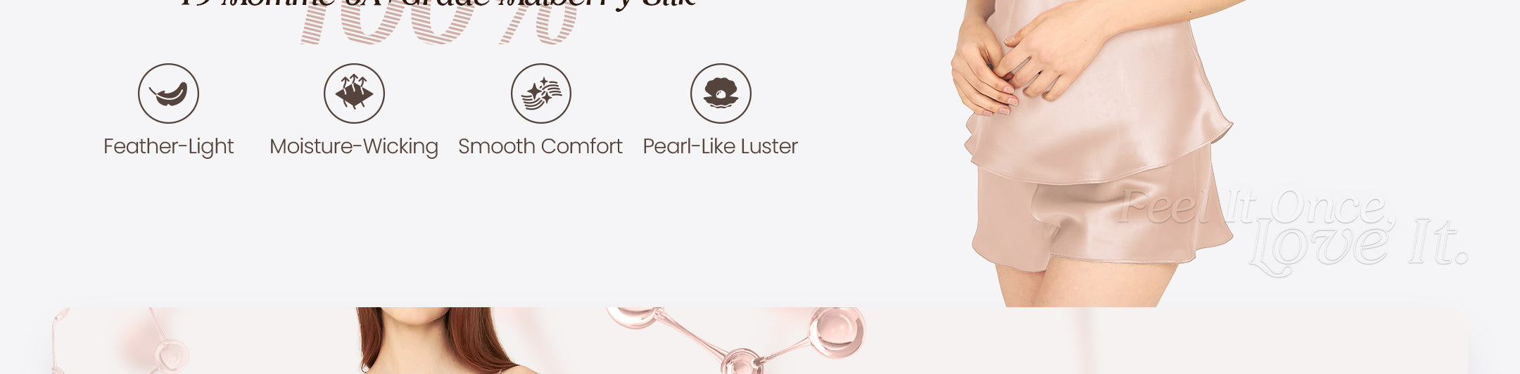 - Liquid-Like Sheen — Our 19 momme mulberry silk glows with a luminous satin finish, cascading light like liquid gold . The fabric's natural luster follows every movement with whispering elegance—as if woven from moonlight.