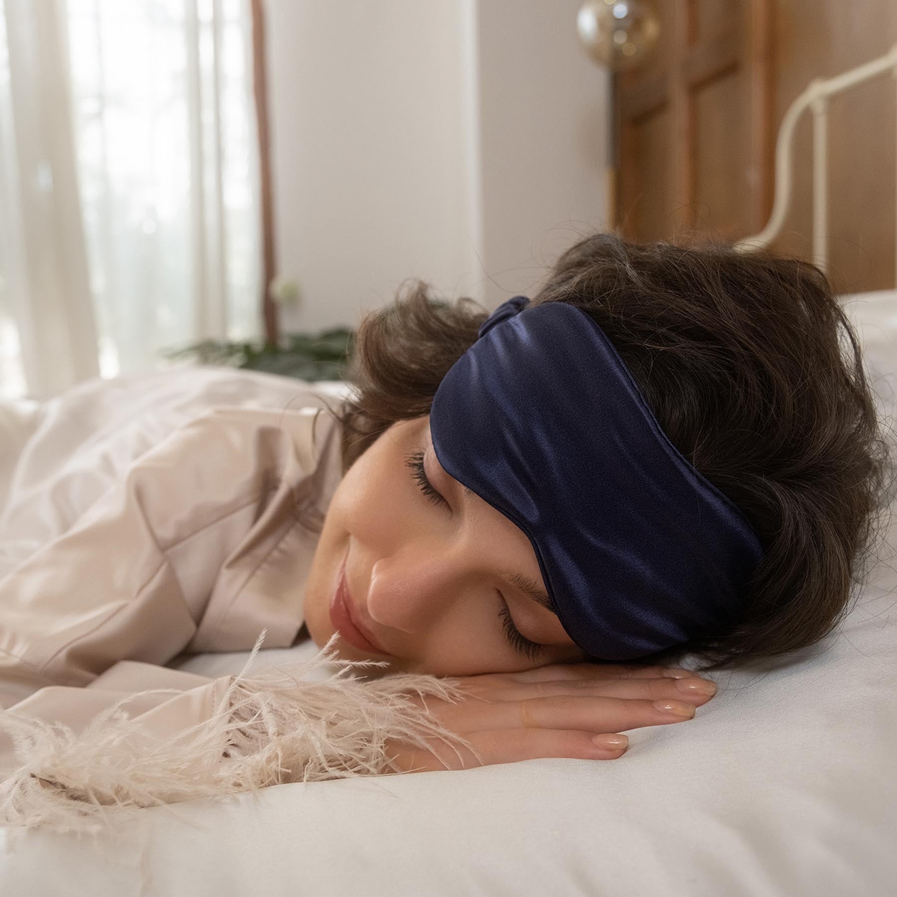 FEELITS 100% Royal Mulberry Silk. Natural Beauty Sleep Eye Mask- 22-momme Lapis Blue