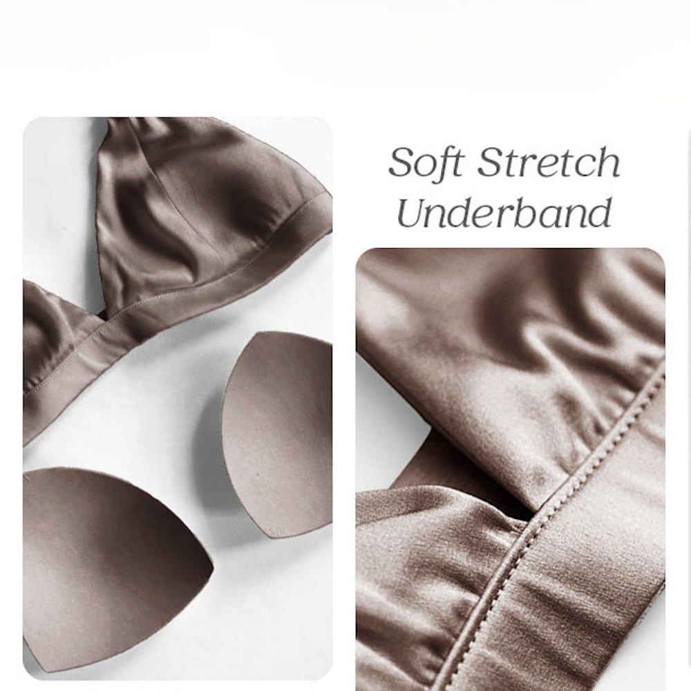 Feelits 6A Grade Mulberry Silk Wireless Silk Satin Triangle Bralette, No Underwire, Sexy & Comfortable Wire - Free Bra for Women - FEELITS