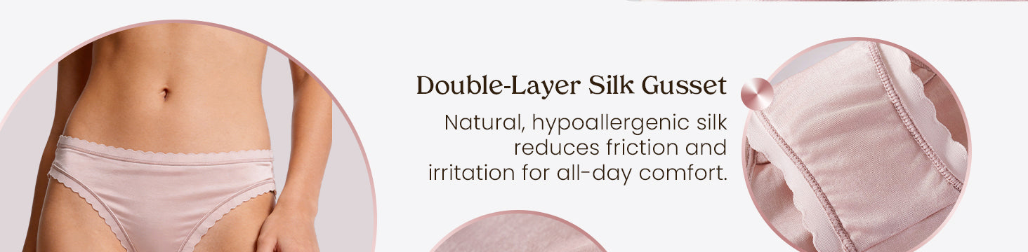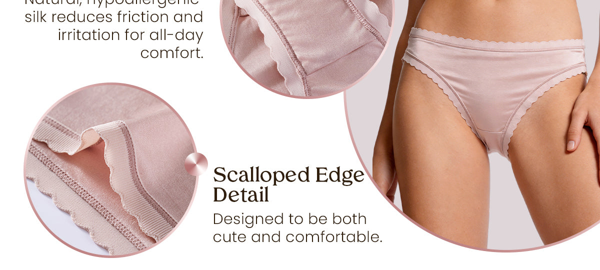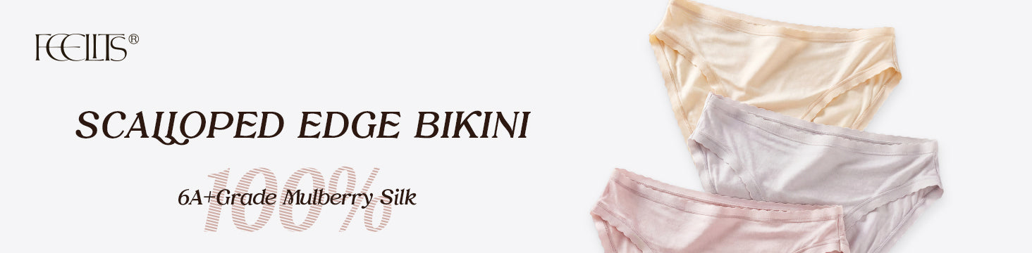 FEELITS Women's Mulberry Silk Bikini Panties – Scalloped Edge, Ultra-Soft & Breathable