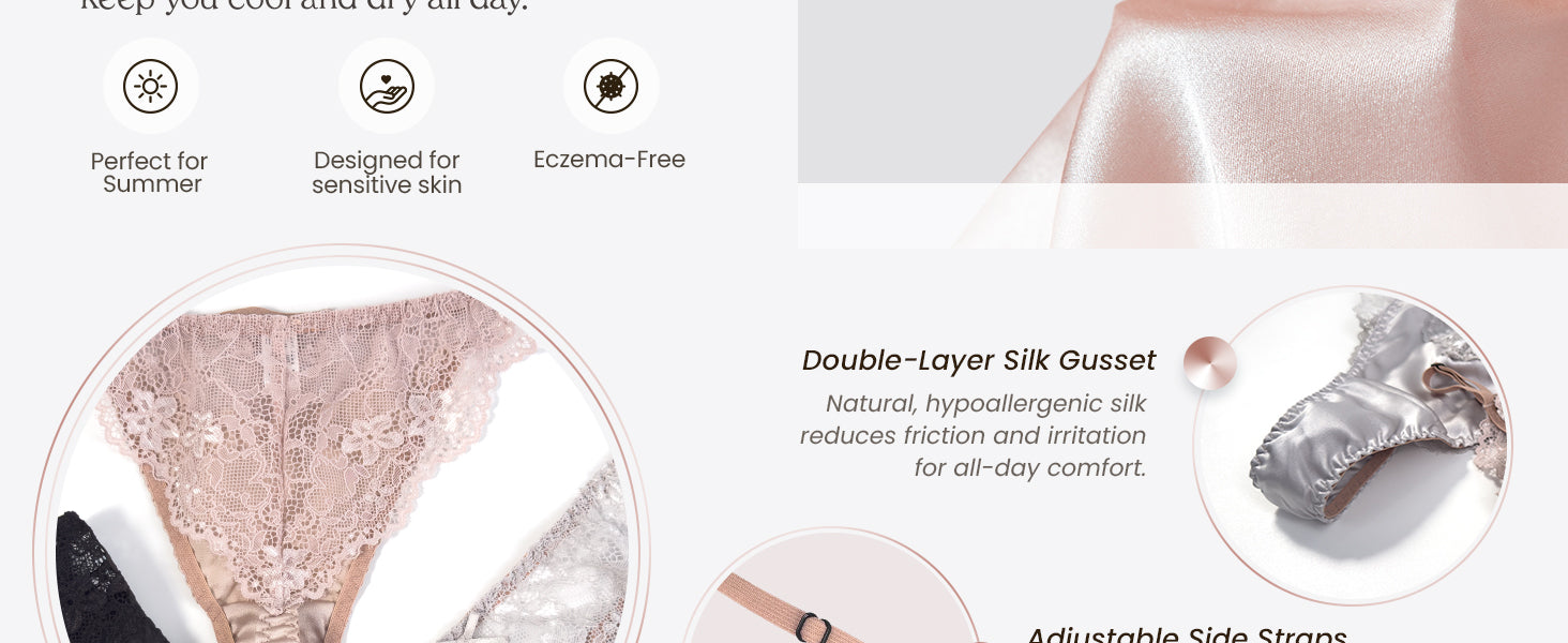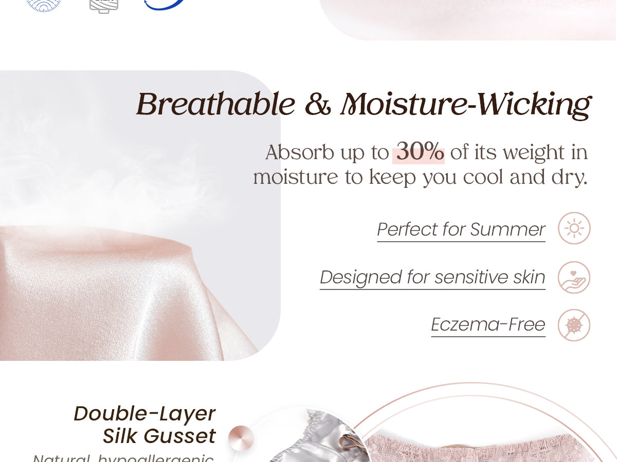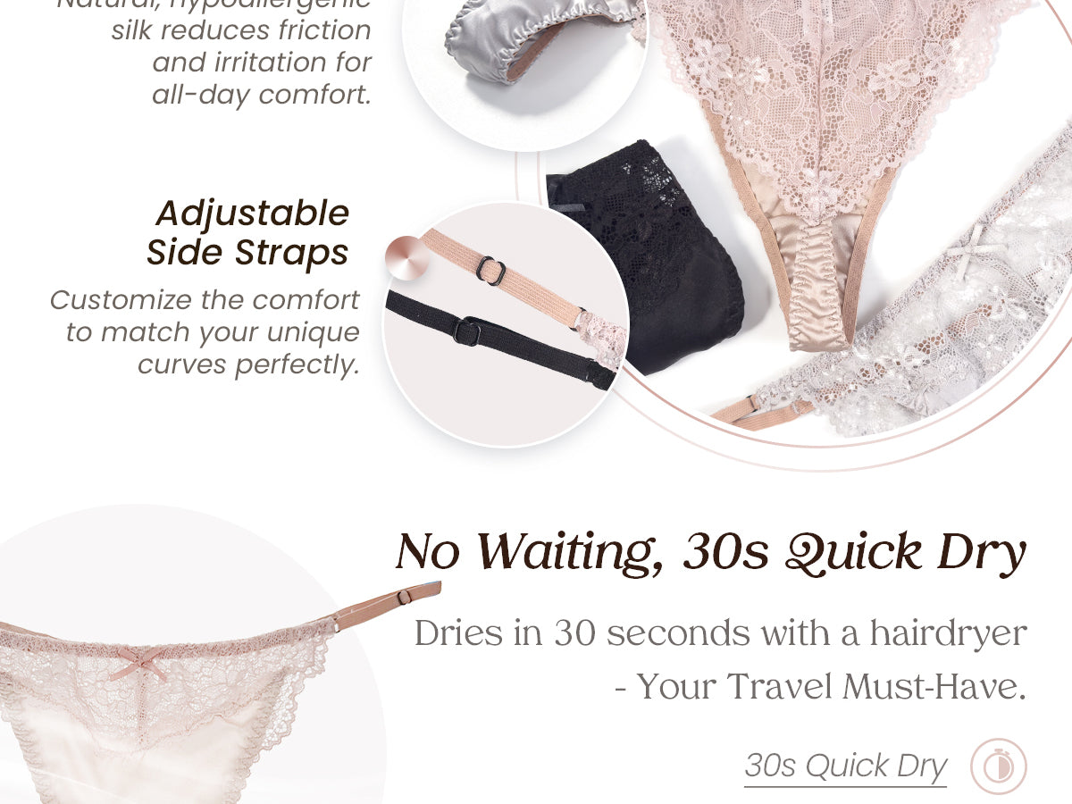 - Gentle & Hypoallergenic — Crafted from 100% natural silk, this fabric prevents itching and discomfort, promoting a healthy balance in intimate areas. Ideal for sensitive skin!