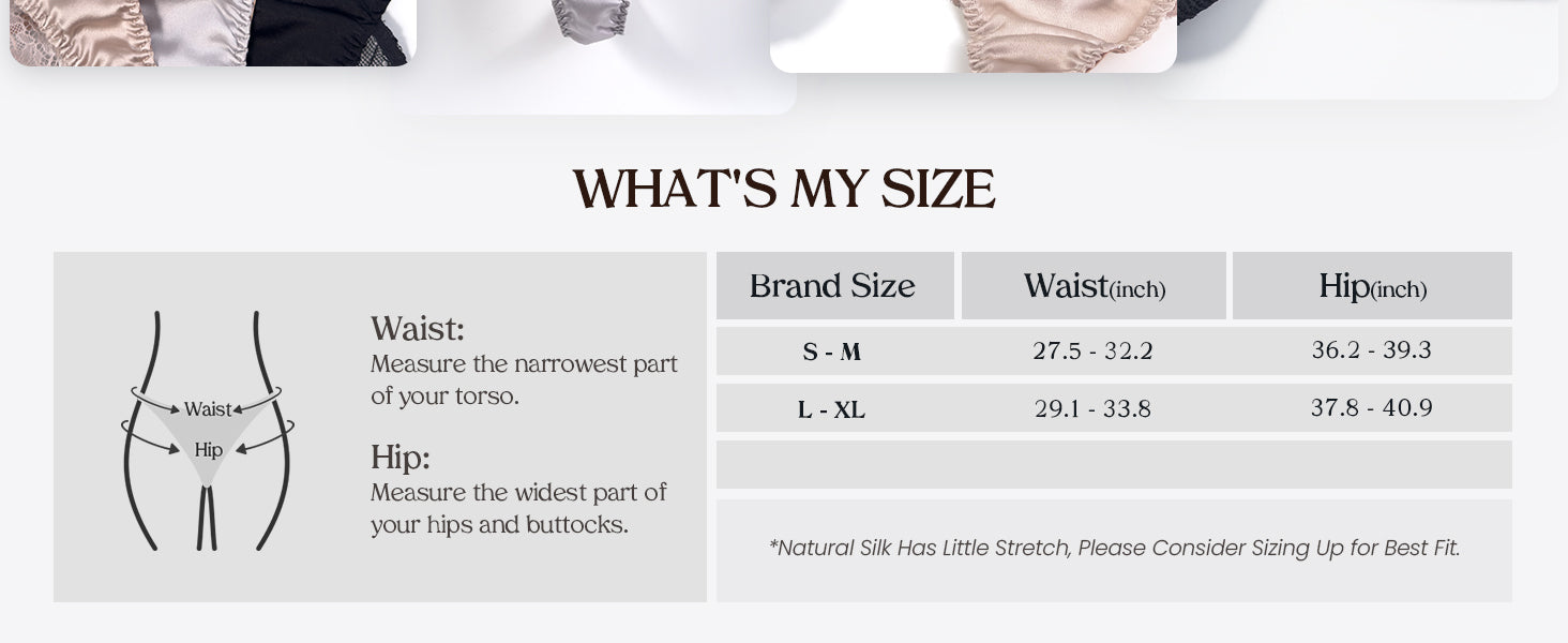 - Easy Care — Hand wash only in cool water (below 86°F) with a mild, pH-neutral detergent. With this simple care, your silk panties will retain their luminous sheen and heavenly softness for years.
