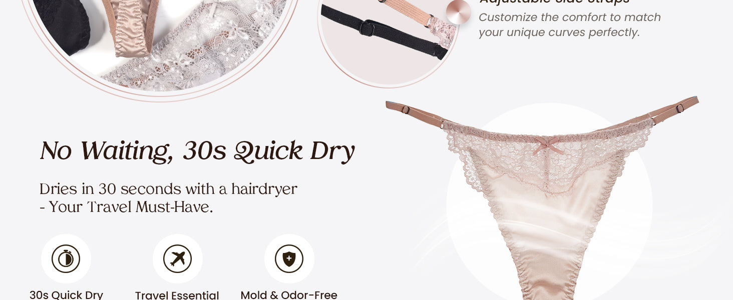 - Fully Adjustable Side Ties — The delicate adjustable ties on each side allow you to customize the fit perfectly to your unique body. Achieve the exact level of comfort you desire, ensuring each T-back feels like it was made just for you.