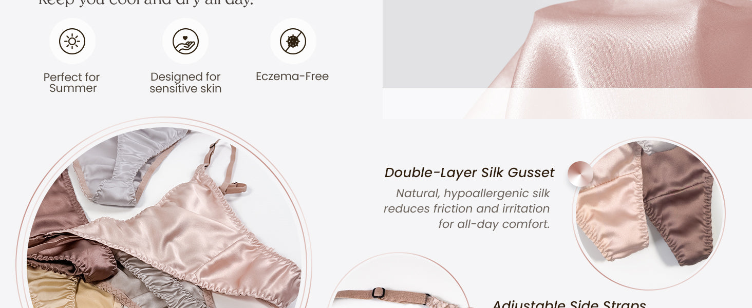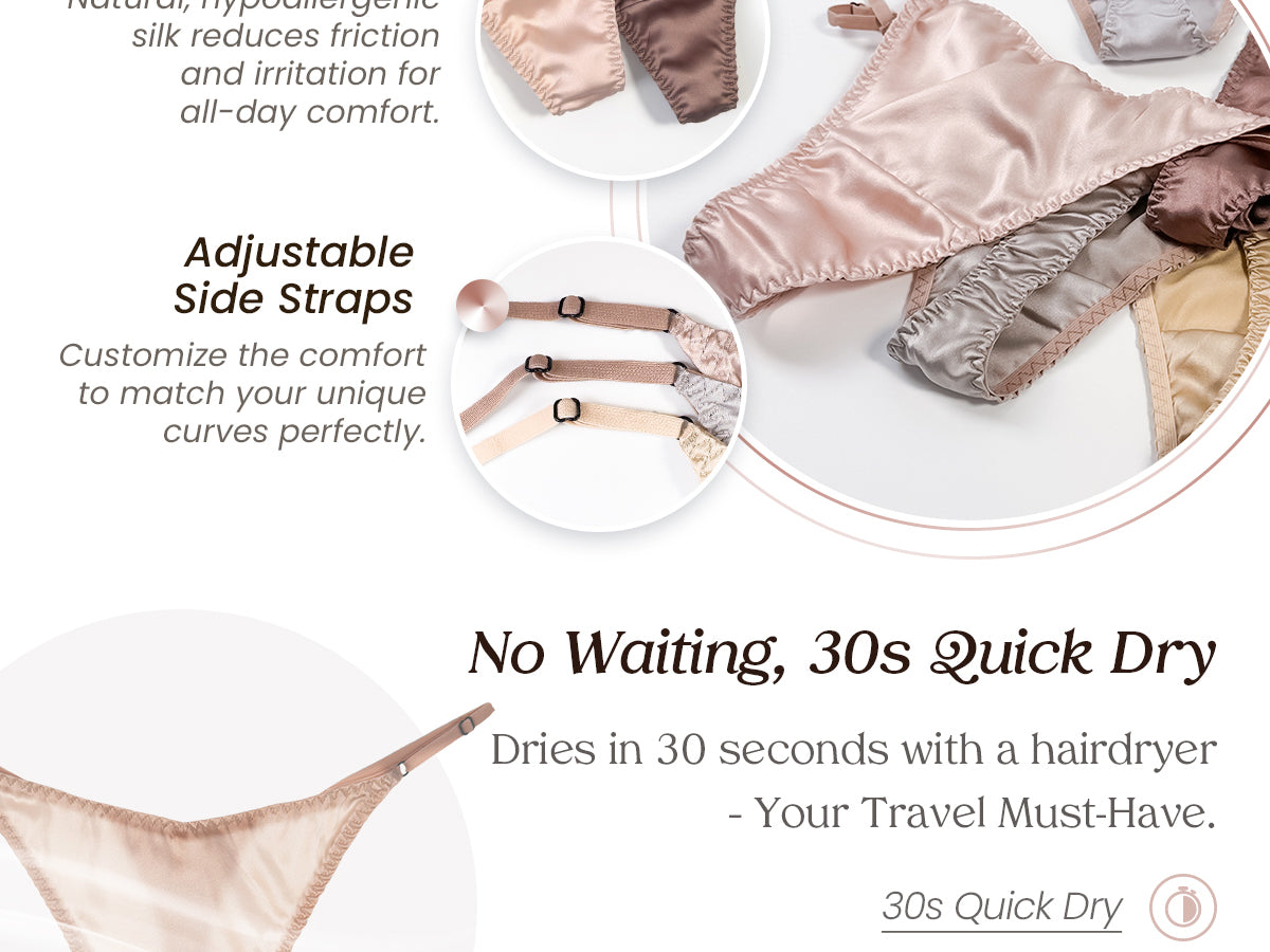 - Gentle & Hypoallergenic — Crafted from 100% natural silk, this fabric prevents itching and discomfort, promoting a healthy balance in intimate areas. Ideal for sensitive skin!