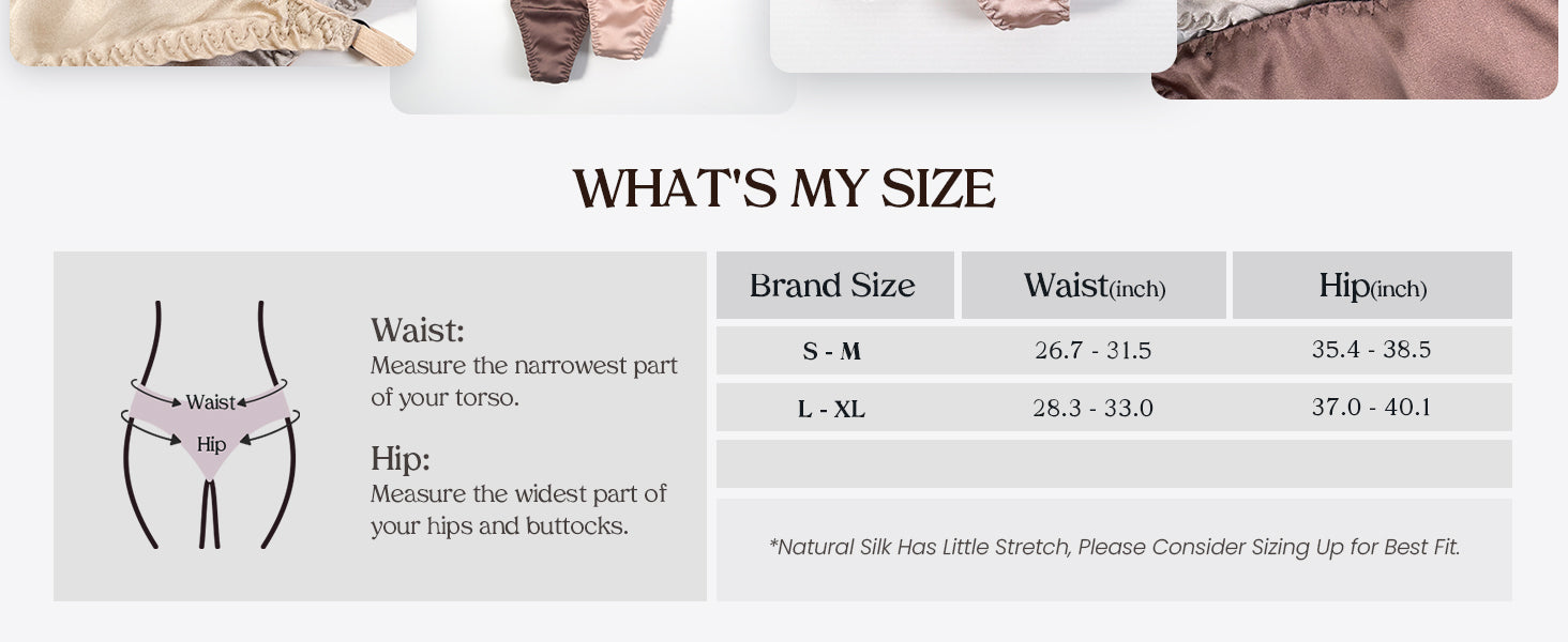 - Easy Care — Hand wash only in cool water (below 86°F) with a mild, pH-neutral detergent. With this simple care, your silk panties will retain their luminous sheen and heavenly softness for years.