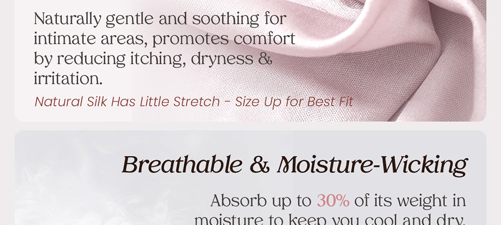 • Gentle & Hypoallergenic – Crafted from 100% natural silk, this fabric prevents itching and discomfort, promoting a healthy balance in intimate areas. Ideal for sensitive skin!