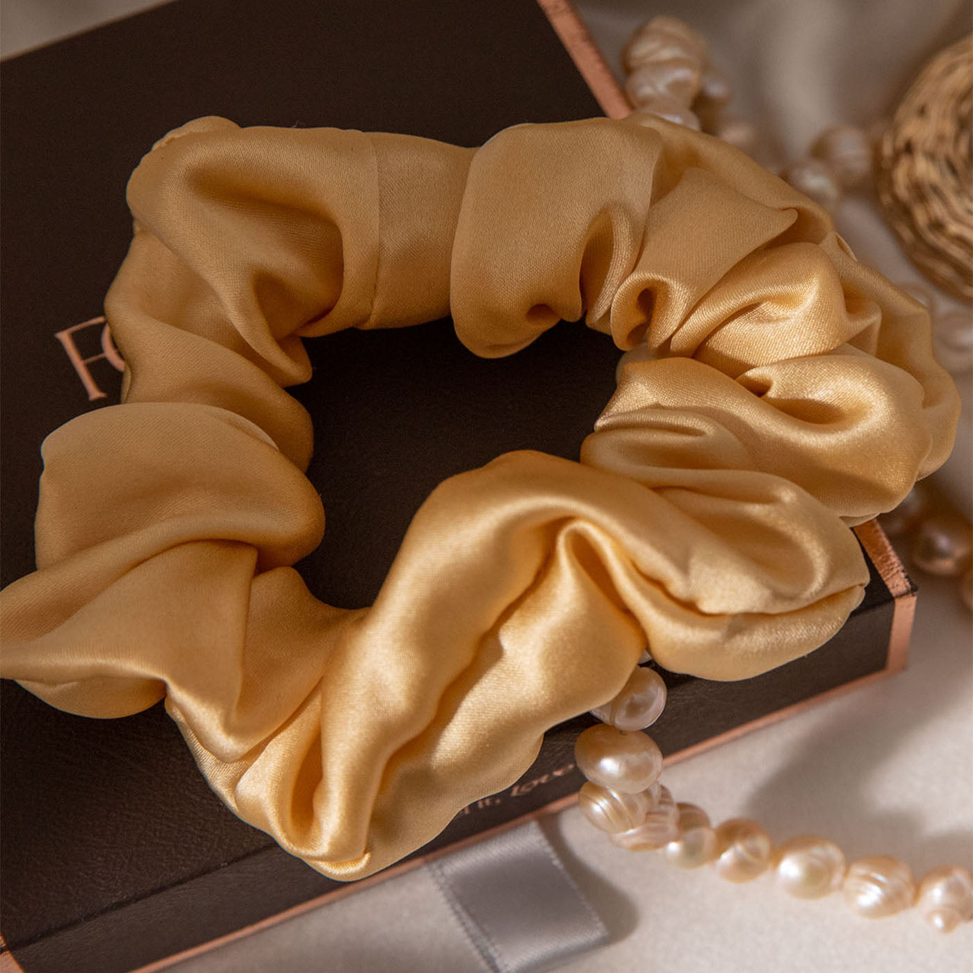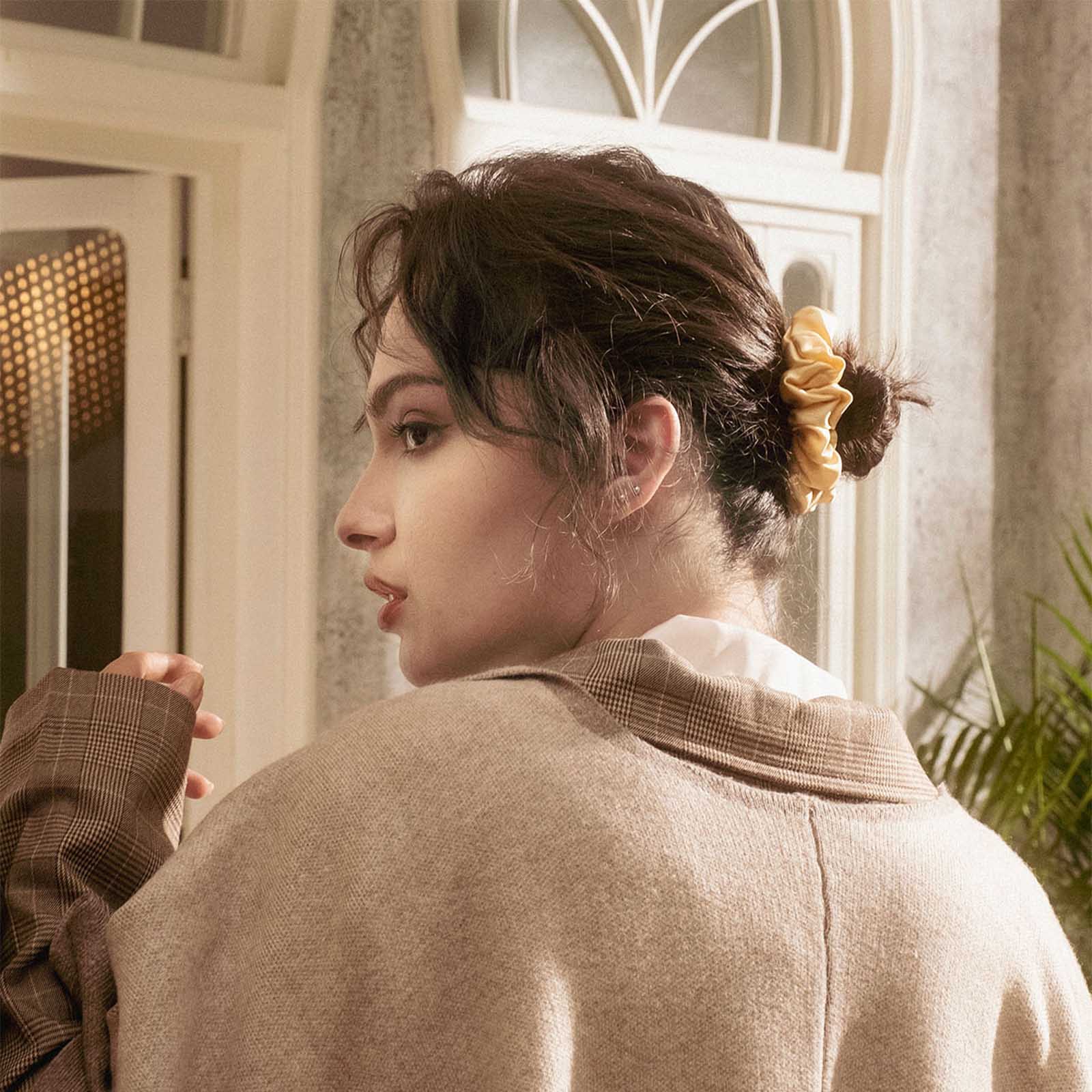 FEELITS 100% Royal Mulberry Silk. Natural Care Silk Hair Scrunchies- Champagne Gold