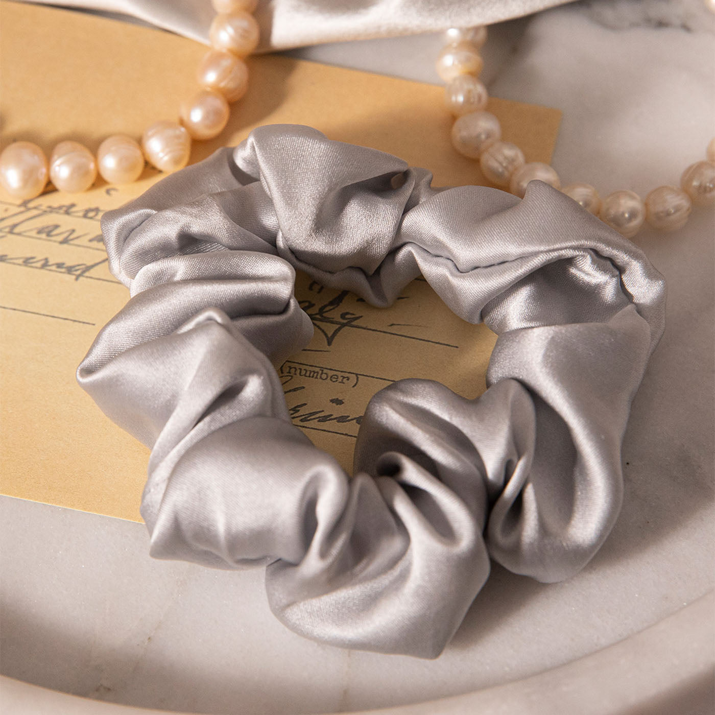 FEELITS 100% Royal Mulberry Silk. Natural Care Hair Scrunchies- Silver Grey