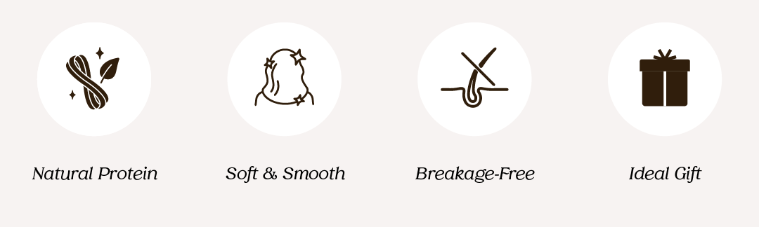 Feel the innate care power of natural Feelits royal mulberry silk protein, preventing frizz, tangle, and leaving no dents on your hair.