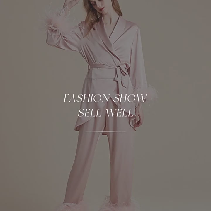 - Detachable Feather Detail for Extra Glamour: The detachable feather accents on the short robe sleeves add a touch of sophistication, making this set an ideal choice for lounging or a special evening. Reminder: Remove feathers before washing.