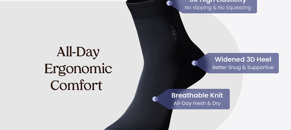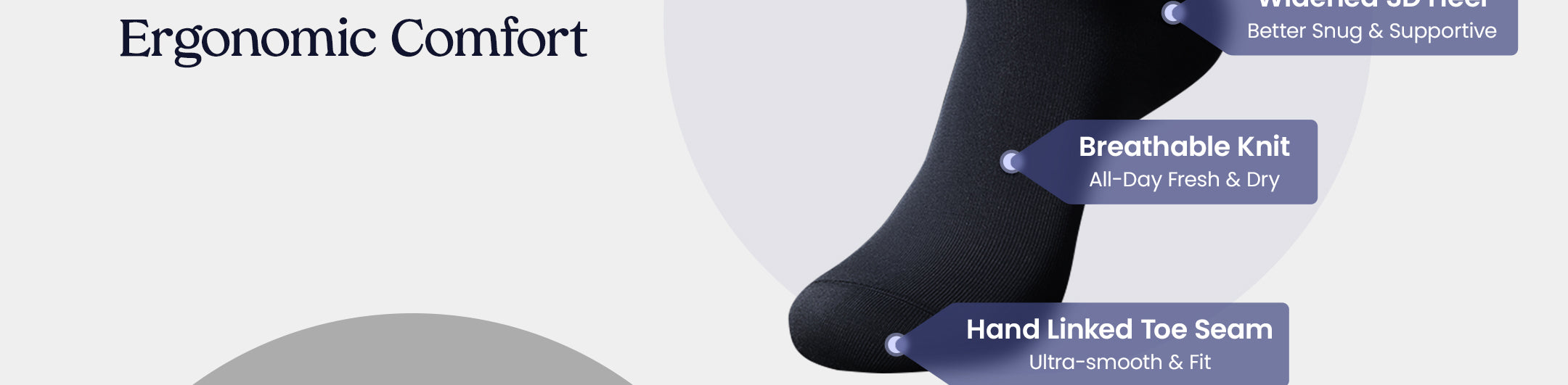 • Elastic Support & Non-Slip Design – Features a stretchable fit that comfortably hugs your feet without slipping or bunching. The reinforced heel and toe offer enhanced durability and support.