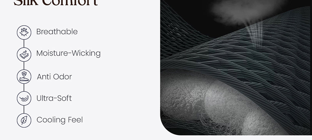 • Breathable & Temperature-Regulating – Designed to keep your feet cool in summer and warm in winter, the natural breathability of silk ensures moisture-wicking, reduces sweat buildup, and prevents unwanted odor.