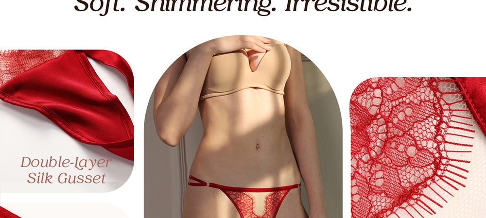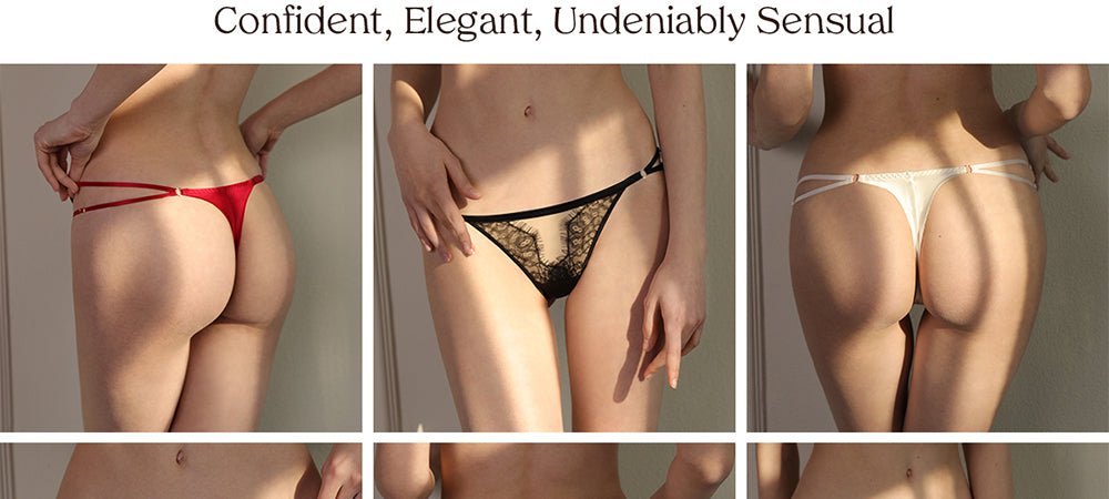 - Turn up the allure with the FEELITS Seduction Silk Thong, designed for women who crave both luxury and sensuality. Crafted from premium mulberry silk and delicate lace, this thong combines exquisite embroidery with a daring cut to highlight your curves with elegance. The adjustable waistband ensures a custom fit, while the double-layer silk gusset cares for your intimate health.