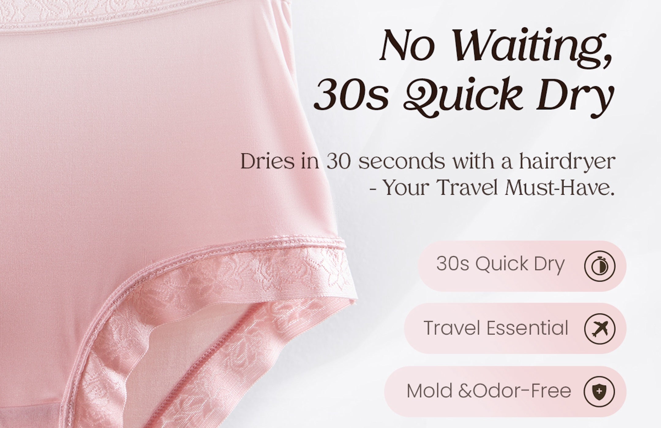 • Quick-Dry & Travel Must-Have – No need for a dryer—just use a hairdryer to dry these silk panties in 30 seconds, offering ultimate convenience for travel and everyday use.