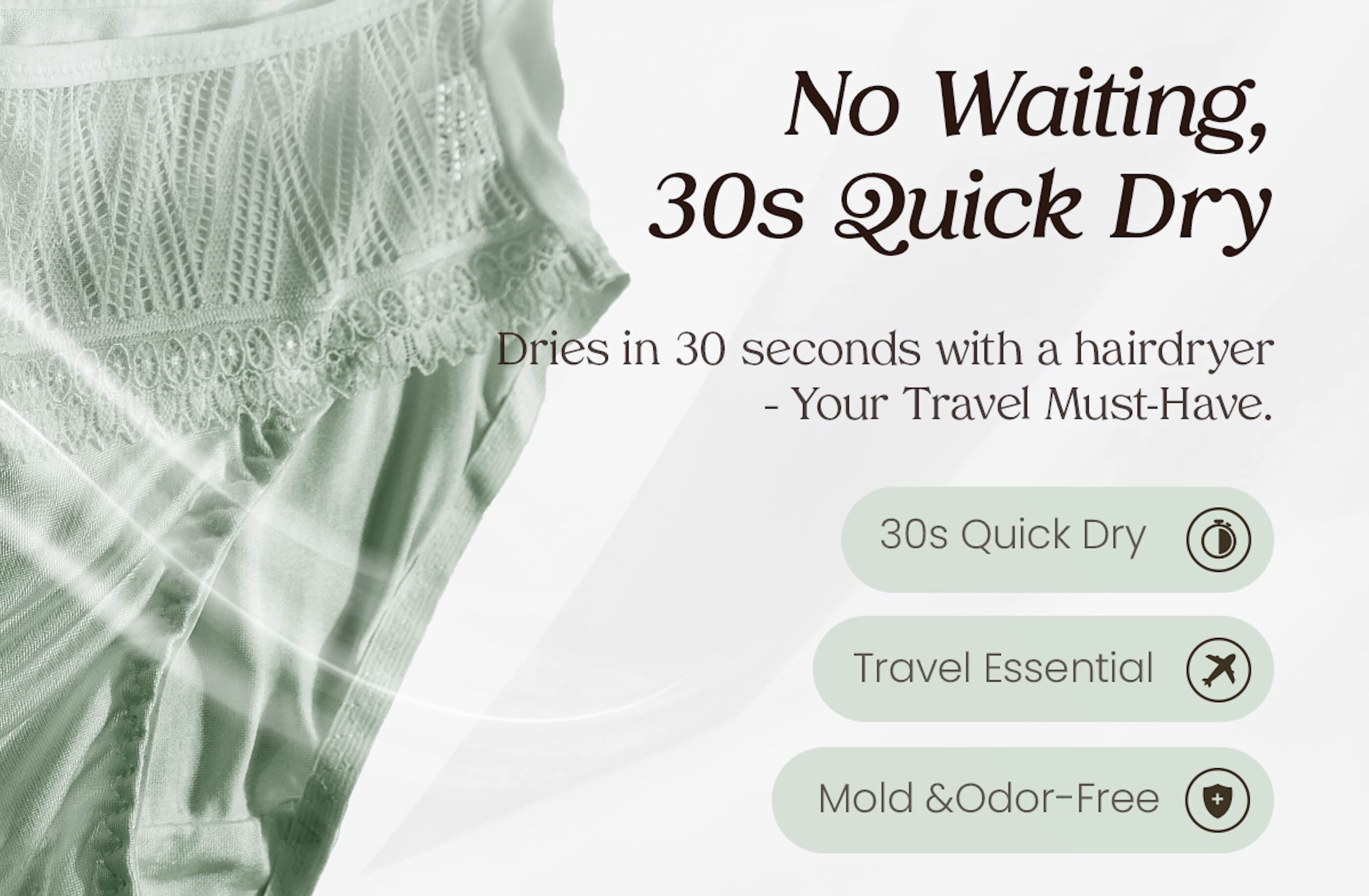 - Quick-Dry & Travel Must-Have – No need for a dryer—just use a hairdryer to dry these silk panties in 30 seconds, offering ultimate convenience for travel and everyday use.